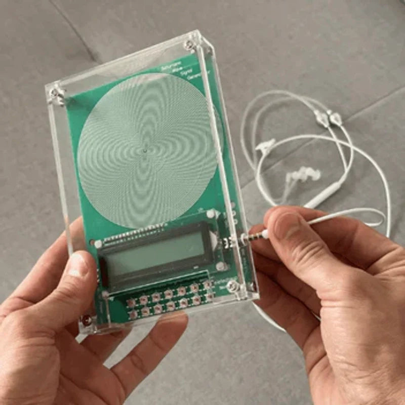 El dispositivo emite frecuencias mediante un campo electromagnético pulsado (PEMF). También puedes escuchar estas frecuencias a través de auriculares o altavoces conectados.