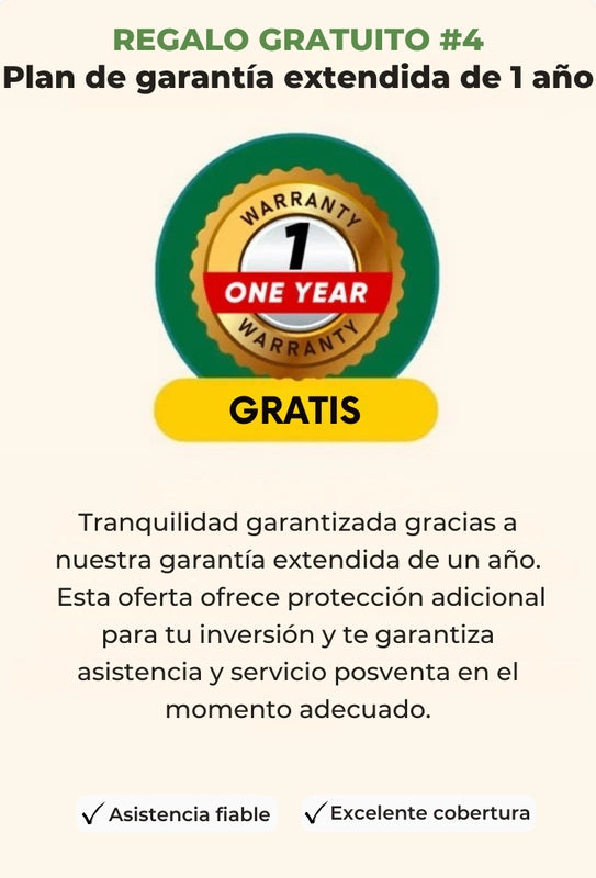 - Extensión de garantía de 1 año (valor: 5 €)